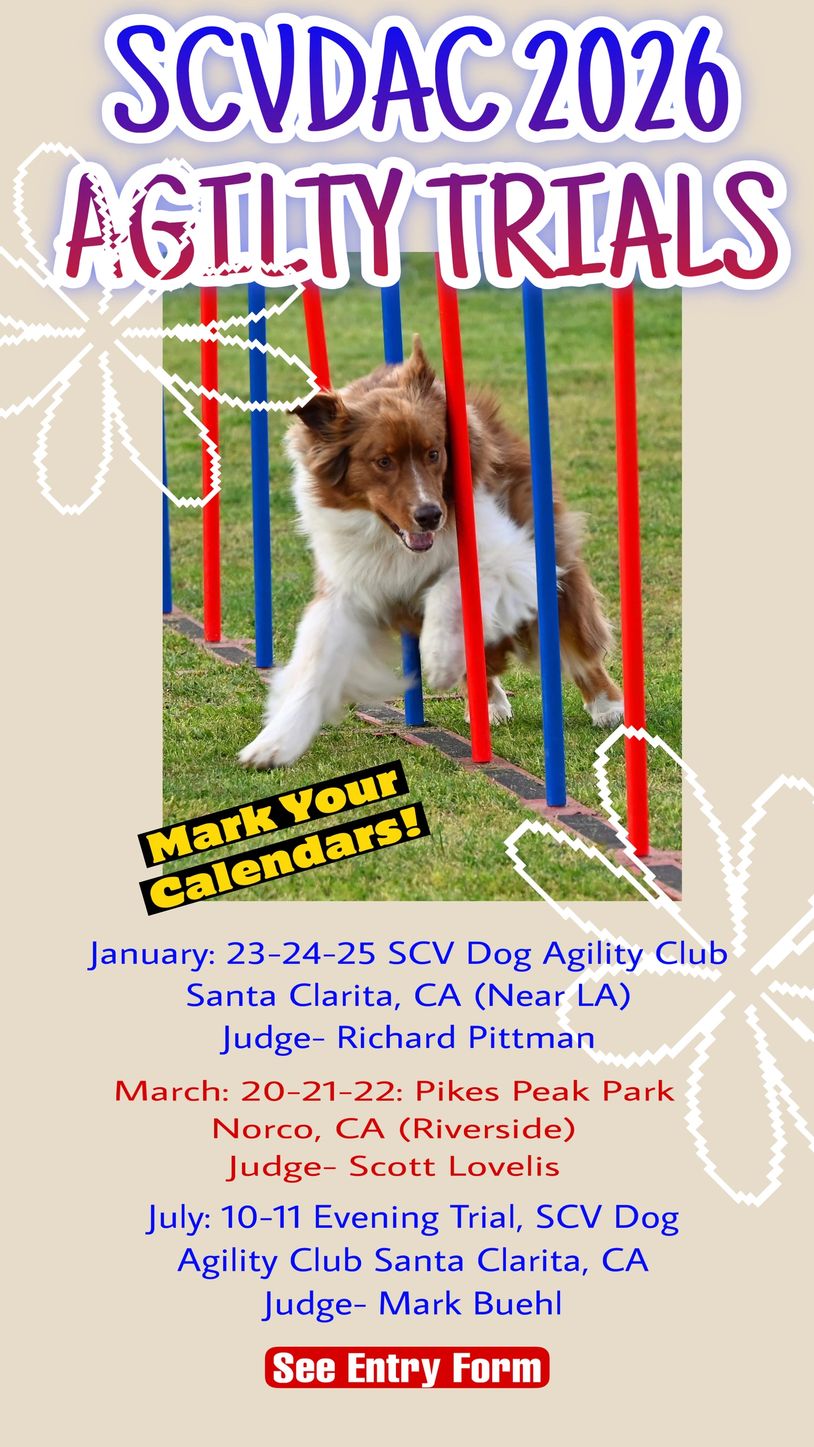 Our own Santa Clarita Valley Australian Shepherd Club is hosting a 3 day Agility trial. This is the 1st Agility Trial of the year, 2026. We ...