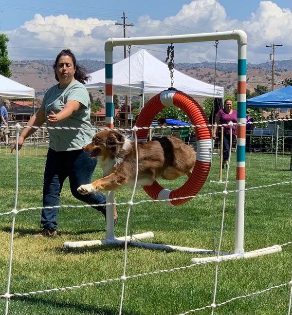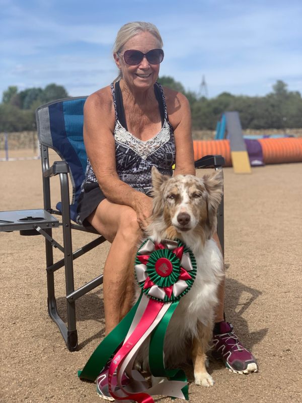Dana with Roxi, her first agility dog. 2022 Visalia CA